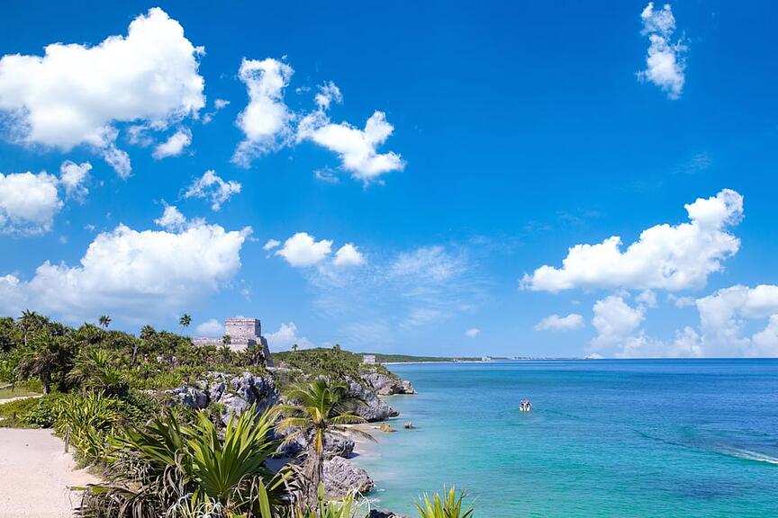 Heute unternehmen Sie eine gemütliche, aber nicht minder spektakuläre Bootsfahrt auf der türkisblauen Lagune von Bacalar. Ein erster Halt machen Sie bei der 90 Meter tiefen Cenote Cocalitos/Stromatolites. Stromatolithen sind Vorfahren von Korallen, die auf den Ursprung des Lebens auf dem Planeten zurückgehen. Ihr Reiseleiter wird Ihnen das ganz genau erklären. Als nächstes entdecken Sie den berühmten Piratenkanal, wo das flache, warme Wasser eine unvergessliche Kulisse schafft. Weiter geht es zur mehr als 100 Meter tiefen Black Cenote/Cenote of the Witch, einem Ort voller Fantasie und Rätsel. An dieser Stelle werden Sie erkennen, warum die Lagune auch als «Lagune der sieben Farben» bekannt ist. Zurück in der Zivilisation erkunden Sie die direkt am Meer gelegenen Maya-Ruinen von Tulum mit dem berühmten Blick über den traumhaften Karibikstrand. Die bekanntesten Bauten sind neben dem sogenannten Schloss auch der «Tempel des herabsteigenden Gottes», der «Tempel des Windes» und der Freskentempel. Die innere Stadt wird von einer zum Meer hin offenen Stadtmauer umrundet, an deren Nordwest- und Südwestecken Wachtürme stehen. Anschliessend Transfer in Ihr Hotel, dass sich direkt am karibischen Strand befindet. Hier verabschiedet sich Ihr Reiseleiter von Ihnen.