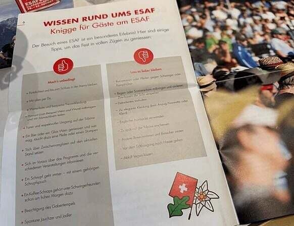 Was ich nicht wusste: Es gibt einen Esaf-Knigge. Ja, eine offizielle Broschüre mit Verhaltensregeln für Gäste. Und die hat es in sich.