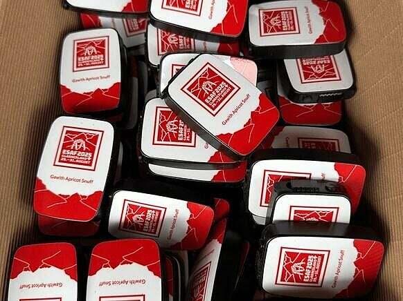 T-Shirts, Caps, Trachtenhemden, Taschenmesser, temporäre Tattoos, Briefmarken – und eben: die legendäre Esaf-Schnupftabakdose. Laut einer Verkäuferin das beliebteste Produkt.