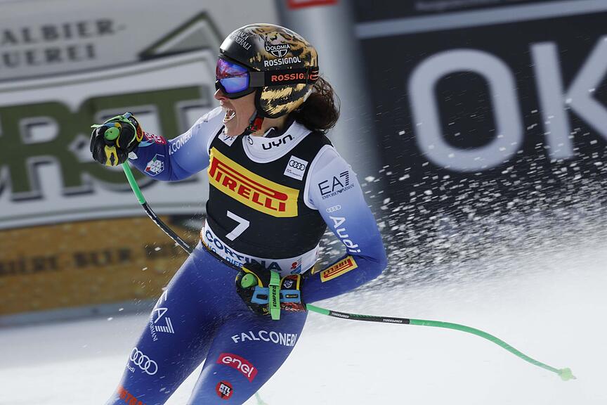 Lara Gut-Behrami, die auf der Piste Tofana schon dreimal einen Weltcup-Super-G gewonnen hat, büsste 58 Hundertstel auf Brignone ein, die mit der Nummer 1 gestartete Corinne Suter etwas mehr als eine Sekunde. Tags zuvor in der Abfahrt hatten die beiden eine Klassierung unter den ersten drei knapp verpasst.