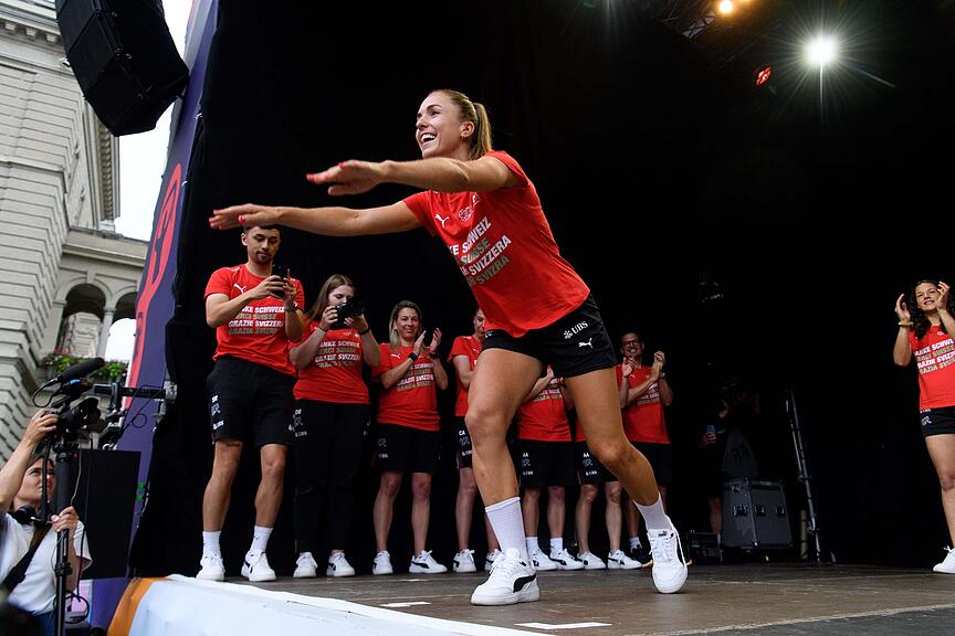 Jede Spielerin wurde einzeln auf die Bühne gerufen. Besonders laut wurde es bei Kapitänin Lia Wälti, die trotz Schmerzen durchbiss und starke Leistungen zeigte. Danach gefragt, wie es ihr gehe, antwortete sie: «Es wurde genug über mich geredet. Es braucht 23 Spielerinnen, alle gaben Gas. Wir hatten vor dem Turnier unheimlichen Druck, weil wir das schaffen wollten, was wir geschafft haben, nämlich die Leute zu berühren und das Feuer zu entfachen. Es sind für uns Momente fürs Leben, wir fühlten uns von euch (Fans) getragen.»