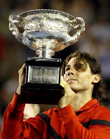 Australian Open 2009: Sein sechster Titel ist der erste in Melbourne. Ein weiteres Mal bezwingt Rafael Nadal Roger Federer in einem Grand-Slam-Final. Der Spanier siegt mit 7:5, 3:6, 7:6, 3:6 und 6:2.