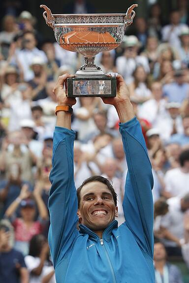French Open 2019: Und auch ein Jahr später führt kein Weg in Paris am Spanier vorbei. Er bezwingt Dominic Thiem erneut, diesmal in vier Sätzen. Nadal sieg mit 6:3, 5:7, 6:1 und nochmals 6:1.