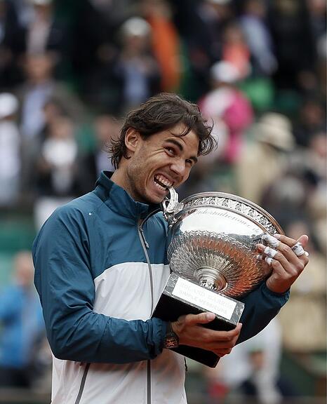 French Open 2012: Nachdem er zuvor in drei Grand-Slam-Finals hintereinander gegen Novak Djokovic verliert, bezwingt er den Serben in Paris mit 6:4, 6:3, 2:6 und 7:5.