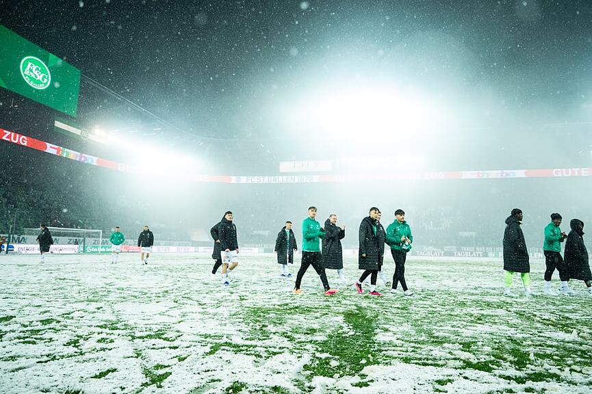Die Partie vom Samstagabend zwischen dem FC St. Gallen und Lugano musste wegen schneebedecktem Terrain im Kybunpark kurzfristig verschoben werden.