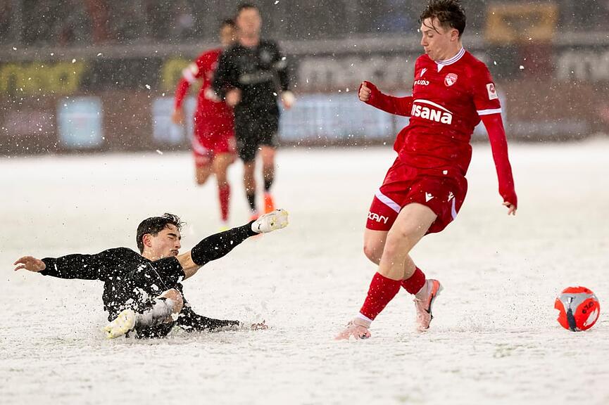 Schiedsrichter Lukas Fähndrich sah isch am Samstagabend wegen einsetzender starker Schneefälle wenige Minuten vor dem Anpfiff zur Absage gezwungen. Auch aufgrund der schlechter werdenden Wetterprognosen wäre das Verletzungsrisiko für die Spieler auf dem schneebedeckten Rasen zu gross gewesen, hiess es. (sda)
