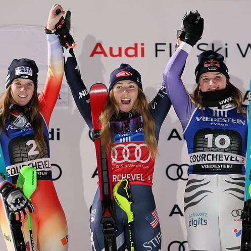 Zurück zu Camille Rast: Ihr zweiter Podestplatz im Riesenslalom, der erste in dieser Saison, ist eben so logisch wie Scheibs Triumph. Allein, weil die Walliserin in dieser Disziplin zuletzt zweimal auf Platz 4 fuhr. Aber auch, weil die begnadete Technikerin die Hüftprobleme, die sie seit dem Ende der vergangenen Saison quälen und im Sommer kein optimales Training zugelassen haben, offenbar nicht mehr derart beeinträchtigen wie noch zu Saisonbeginn.