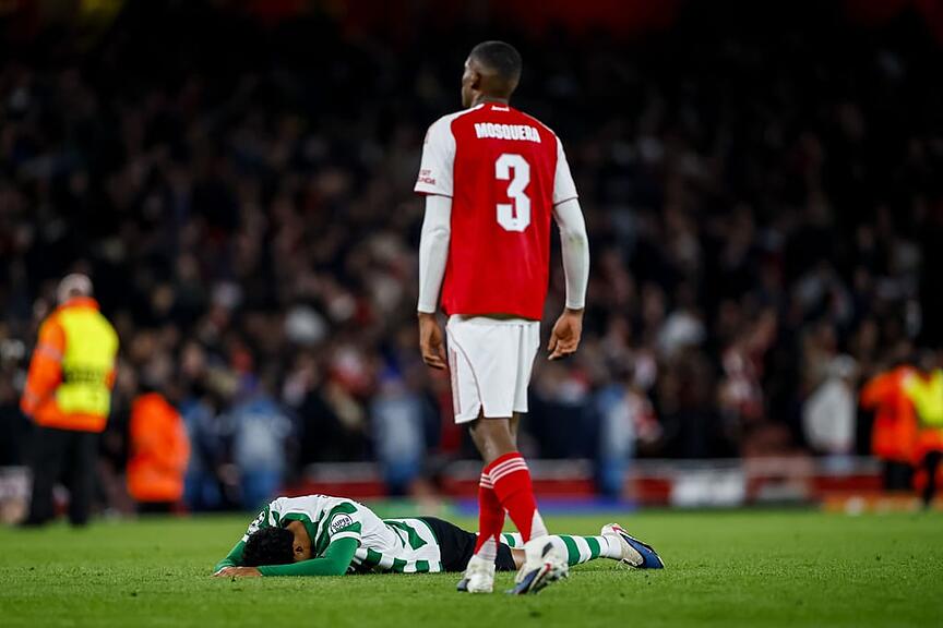 Nach zehn Minuten gab es dann erstmals Entlastung für die Gäste, die sofort für Gefahr sorgte, als Geny Catamo im Strafraum der Gunners theatralisch zu Boden ging. Der frühere Leverkusener Piero Hincapie hatte den Sporting-Stürmer am Fuss getroffen. Doch der französische Unparteiische Francois Letexier entschied sich sofort gegen einen Strafstoss und auch Video-Schiedsrichter Bastian Dankert aus Deutschland meldete keine Einwände.