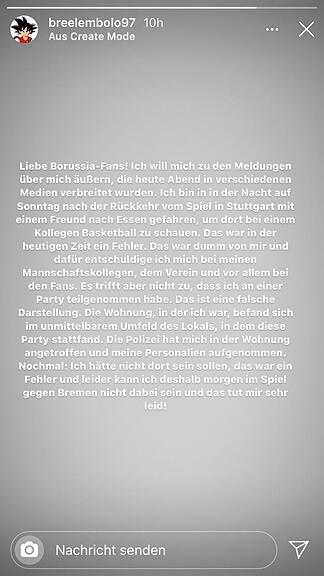 Embolo selbst äusserte sich am Montagabend via den sozialen Medien. Er schreibt: «Ich bin in der Nacht auf Sonntag nach der Rückkehr vom Spiel in Stuttgart mit einem Freund nach Essen gefahren, um dort bei einem Kollegen Basketball zu schauen. Das war in der heutigen Zeit ein Fehler. Das war dumm von mir und dafür entschuldige ich mich bei meinen Mannschaftskollegen, dem Verein und vor allem den Fans.»