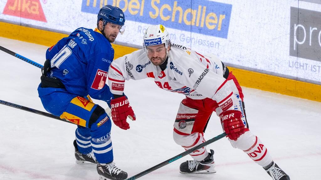 Macht trotz Tor ein schwaches Spiel: EVZ-Stürmer Tomas Tatar (links) im Duell mit Sandro Zangger von den Rapperswil-Jona Lakers.