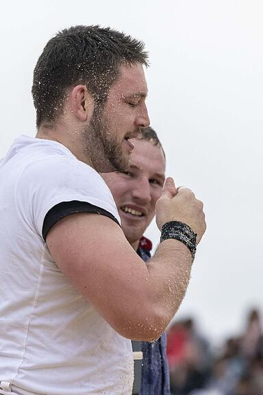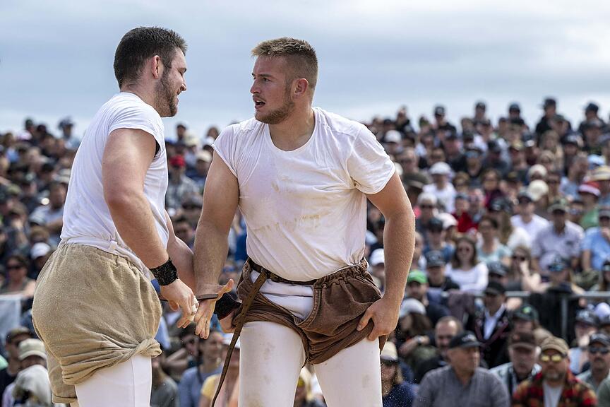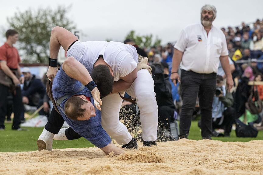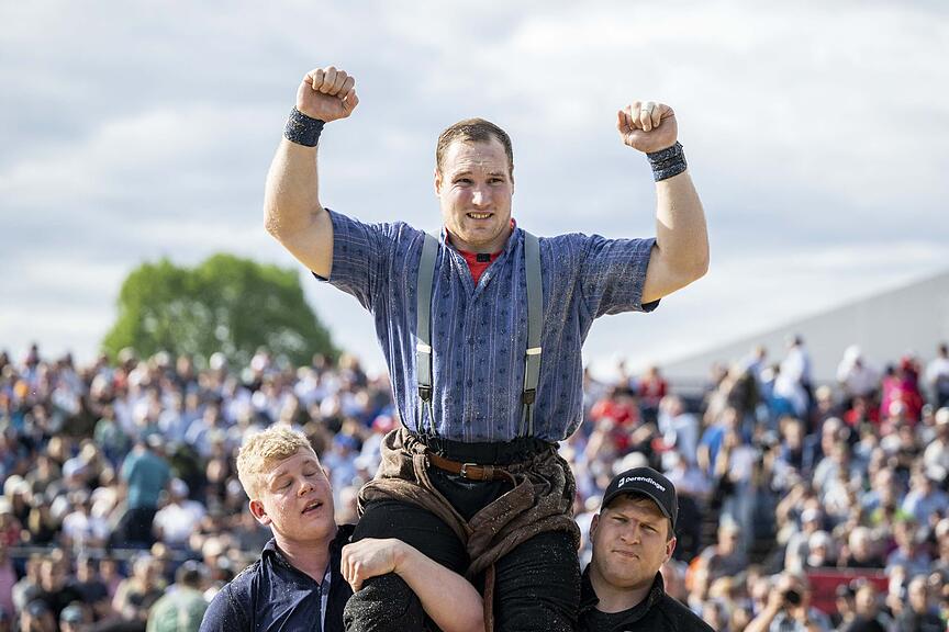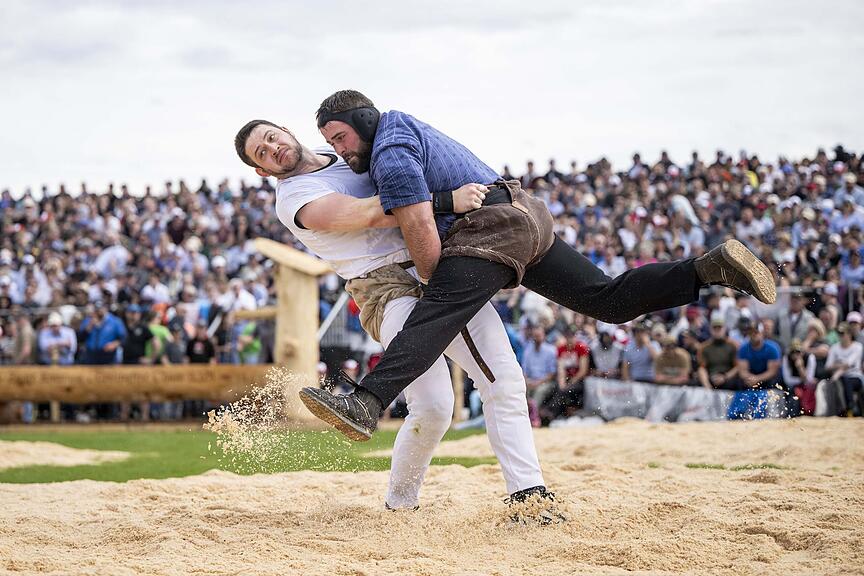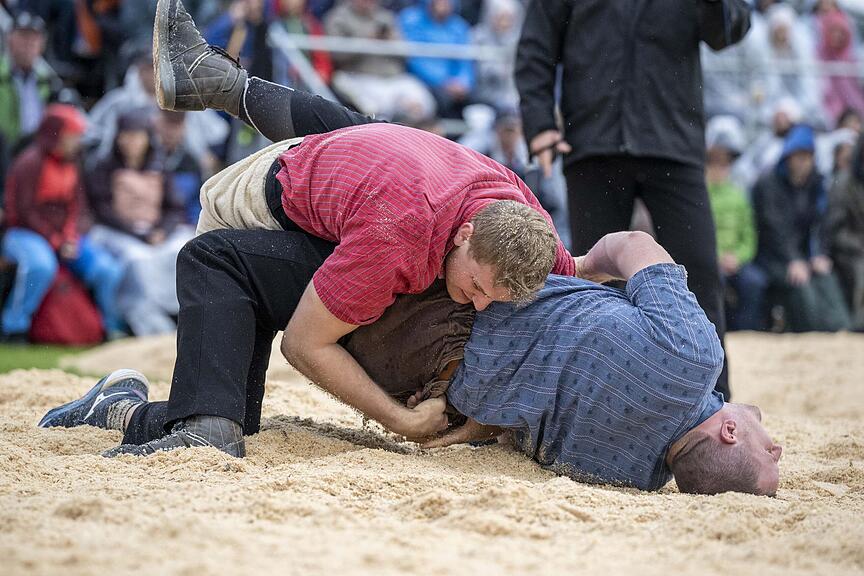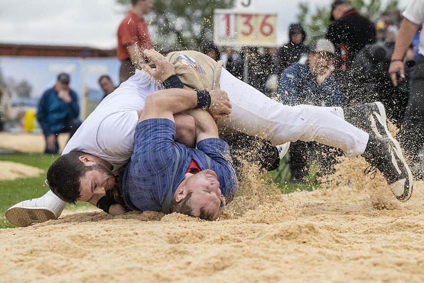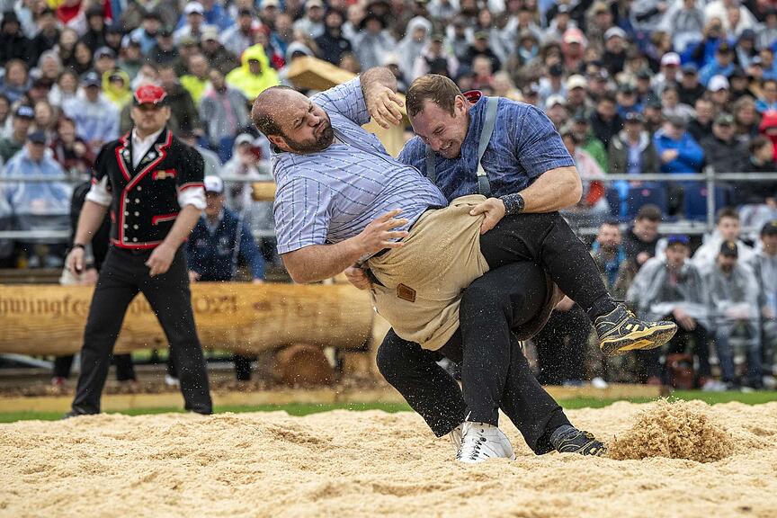 Joel Wicki gewinnt das Zuger Kantonalschwingfest in Cham. Der Sörenberger braucht im Schlussgang nur wenige Sekunden, um zum Sieg zu kommen.