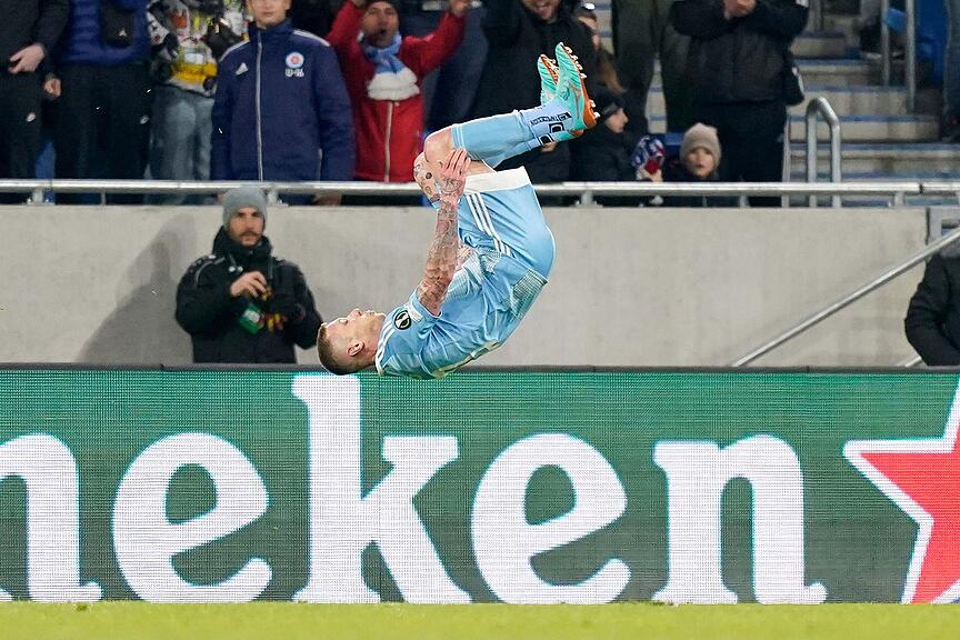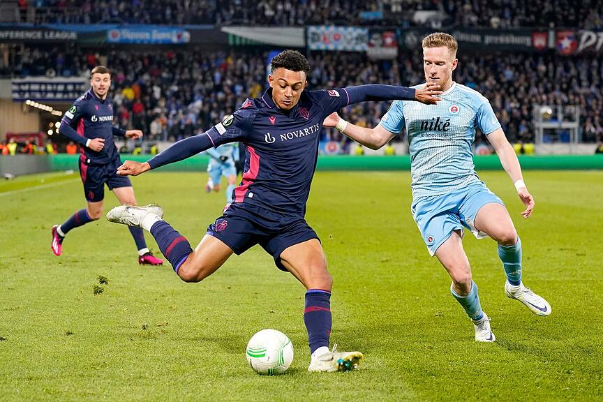 Doch trotz Offensivschwung: Der Stürmer findet noch keinen Weg an den Slovan-Verteidigern vorbei.