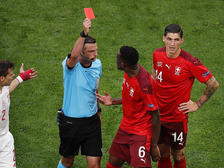 Zwar retteten sich die Schweizer im EM-Viertelfinal gegen Spanien dank einer heroischen Abwehrschlacht in die Verlängerung und ins Penaltyschiessen. Und trotzdem, der Entscheid des englischen Schiedsrichters Michael Oliver, Remo Freuler für sein Tackling gegen Gerard Moreno in der 77. Minute vom Platz zu stellen, war höchst umstritten - und reduzierte letztlich die Chance der Schweizer massiv, das Spiel innerhalb von 120 Minuten zu ihren Gunsten zu entscheiden.