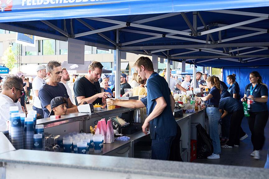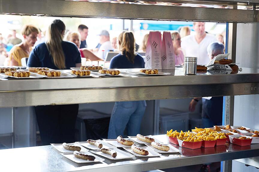 Für Nachschub ist gesorgt: Egal ob Pommes frites, Bratwurst oder eine süsse Waffel zum Dessert.