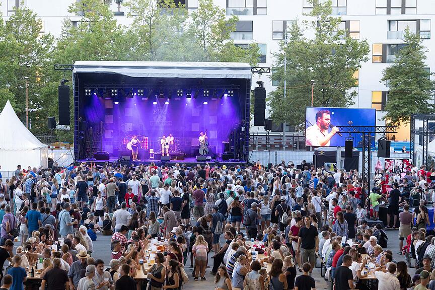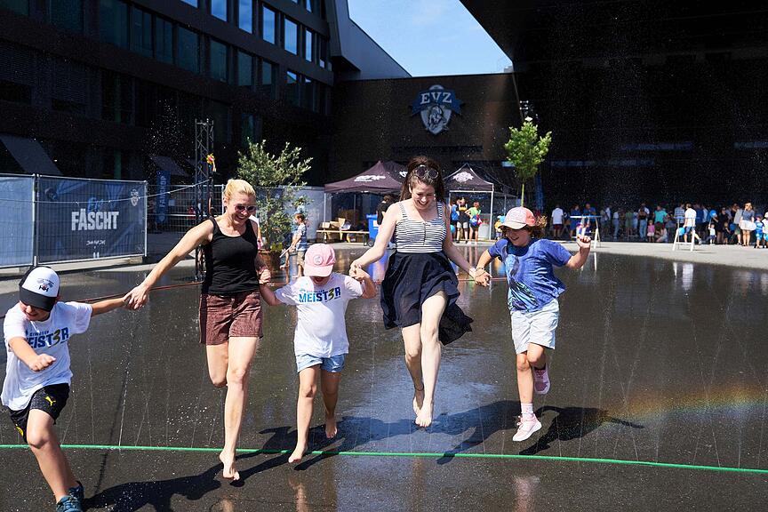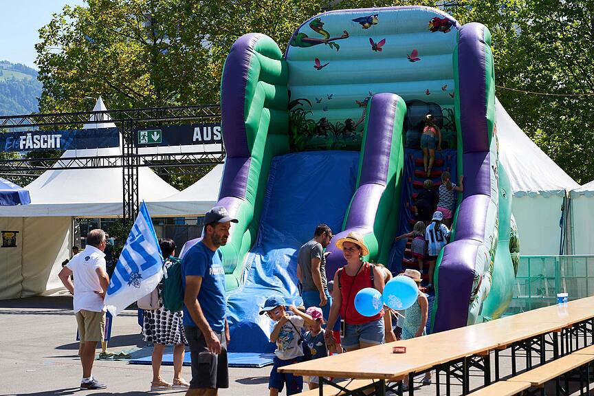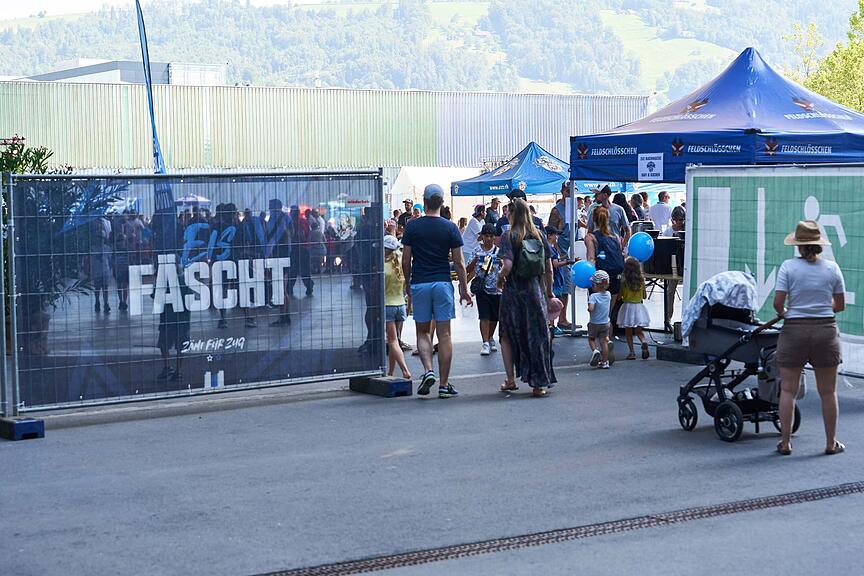 Trotz der Hitze sind bereits viele Besucherinnen und Besucher am Nachmittag beim Eis-Fäscht dabei.