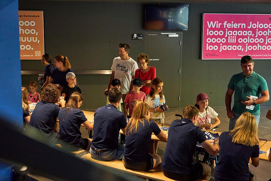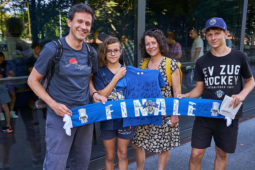 Es ist ein Anlass für alle welche sich schon lange eine Unterschrift wünschen. Am Samstagmorgen findet die restlos ausverkaufte Autogramm Stunde statt mit den Zuger Eishockey Spieler und Spielerinnen des EVZ. Das; «EIS Fäscht» findet bereits zum zweiten Mal in der Bossard Arena statt. Das Sommerfest des EVZ ist erneut sehr beliebt bei gross und klein.