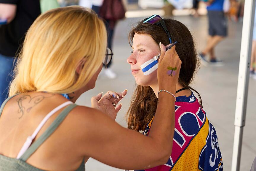 Sich das Wappen ins Gesicht malen zu lassen, ist Ehrensache.