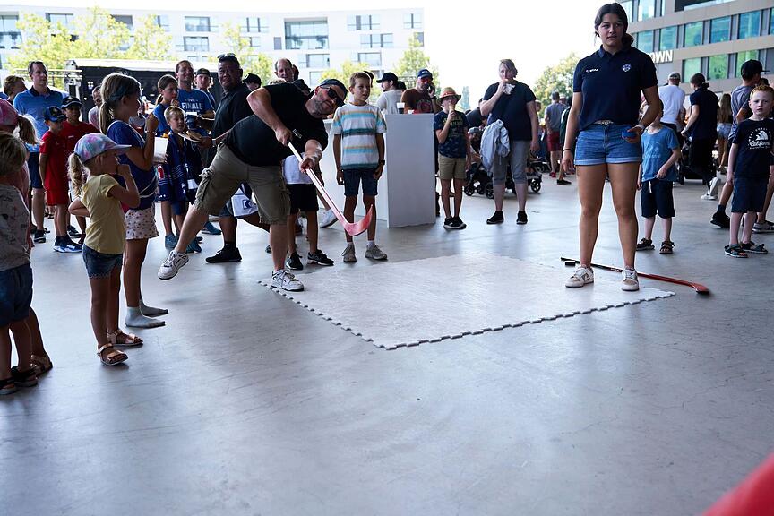 Am Abschuss mit Stock und Eishockey-Puck versuchten sich Jung und Alt.