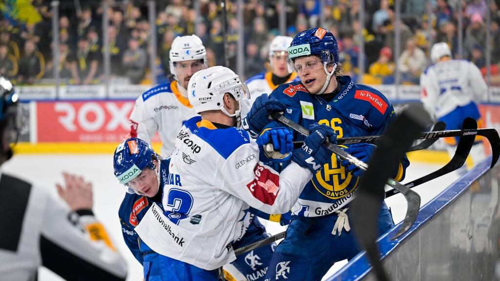 Der Zuger Jan Kovar (links) legt sich mit dem Davoser Simon Knak an.