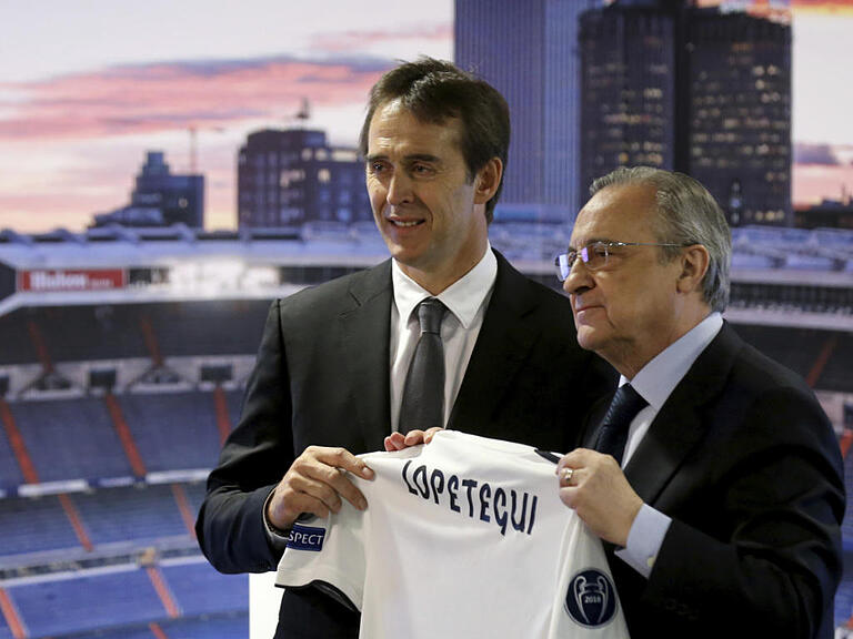 Kurz vor der Präsentation hatte der 51-jährige Lopetegui einen Dreijahresvertrag unterzeichnet. Anschliessend posierte der Baske mit seiner Ehefrau Rosa und seinen drei Kindern sowie mit Präsident Perez für die Fotografen.