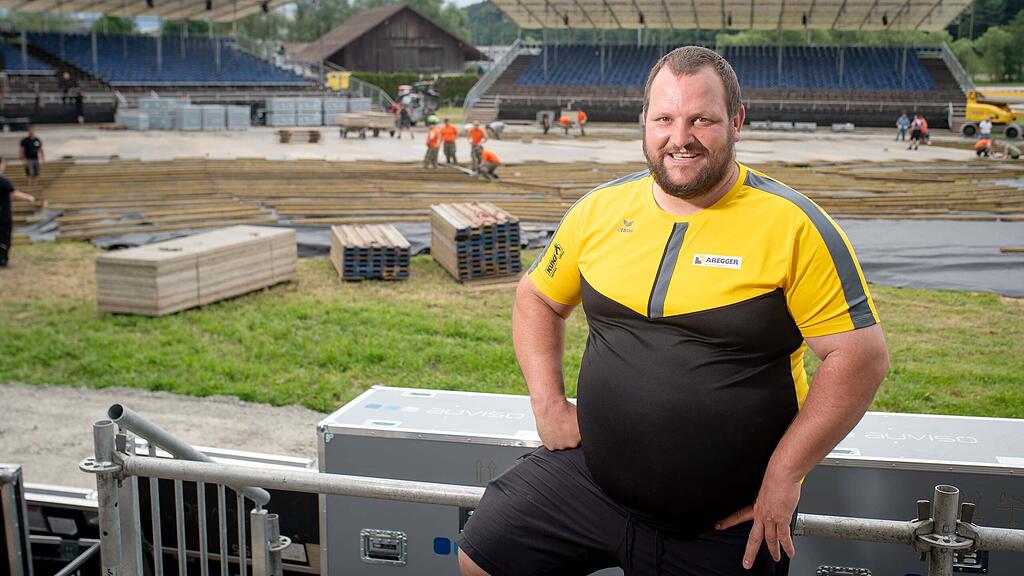 Sven Schurtenberger steht auf einer der fünf Tribünen in Root, wo am Sonntag das Luzerner Kantonalschwingfest stattfindet. Hinter ihm sieht es noch nicht nach Schwingfest aus. Männer des Zivilschutzes decken die Sägemehlringe mit einem Holzboden ab, da am Freitag die Luzerner Kantonalbank in diesem temporären Stadion ein Musikfest veranstaltet . Es braucht dann nochmals einen grösseren Umbau, bevor die Schwinger zusammengreifen können.