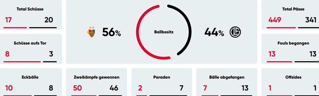 Beide Teams lieferten sich in der ersten Halbzeit einen offenen Schlagabtausch. Die erste Grosschance vergab Xherdan Shaqiri, der in der 27. Minute einen Handelfmeter verschoss, weil Amir Saipi die richtige Ecke wählte. Im Anschluss rettete Mattia Zanotti auf der Linie, ehe Kevin Rüegg den zweiten Abstauber direkt auf Saipi ballerte, der erneut parieren konnte. Fast 1,8 expected Goals blieben in dieser Szene unverwertet. Lugano hatte etwas mehr vom Spiel, verpasste es aber, den vielen Ballbesitz und die guten Konter in Zählbares umzumünzen.