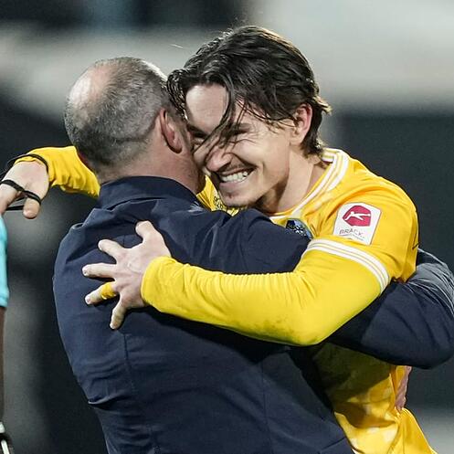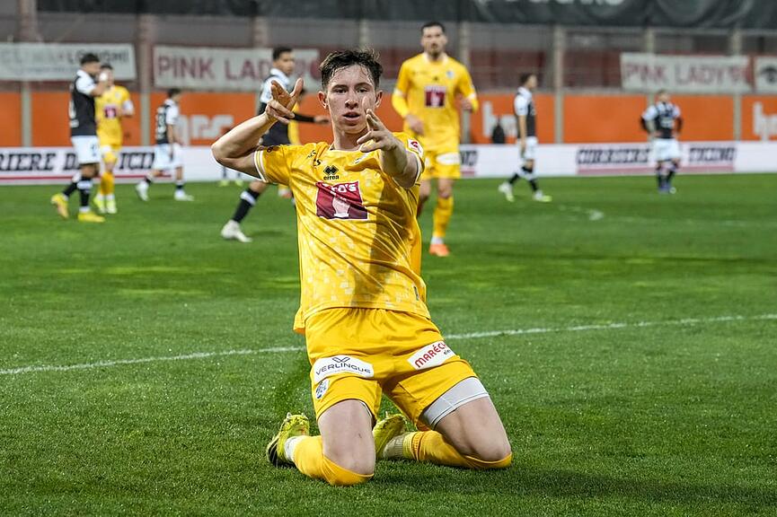 94. Minute: Adrian Bajrami drischt den Ball nach vorne, der springt im Strafraum komisch auf – und dann ist Matteo Di Giusto da. Akrobatisch haut der FCL-Spielmacher den Ball per Fallrückzieher zum traumhaften 3:1 ins Tor.