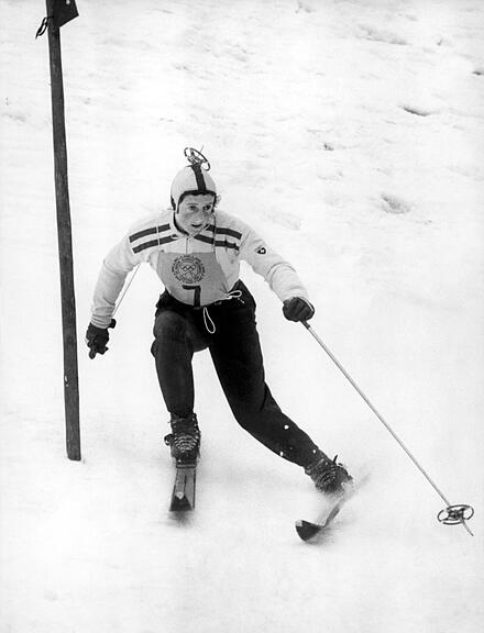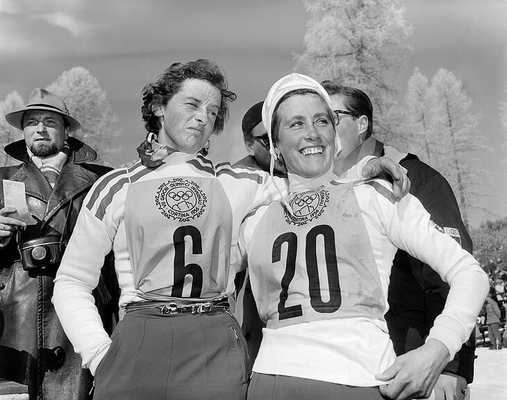 Auch mit 95 schalte sie immer ein, wenn am TV Sport übertragen werde. Das verrät sie beim Hausbesuch von Westschweizer Medien, ehe sie von ihrem Husarenritt auf der Piste «Tofana» berichtet: «Vor dem Ziel war es also schon sehr eng!» Pistenbullys, wie sie heute bei der Präparation zum Einsatz kommen, habe es damals keine gegeben, alles basierte auf Hand- und Fussarbeit der italienischen Soldaten. Die Strecke war genau genommen eine Buckelpiste, die Torstangen waren aus massivem Holz. Und nicht einmal einen Meter neben der Strecke standen meterdicke Bäume.