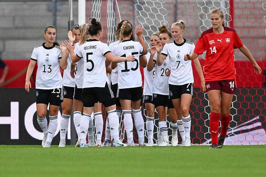 Giulia Gwinn hinten in der Mitte, Janina Minge gleich daneben, Klara Bühl in Reihe zwei ganz rechts. Die Aufstellung zum offiziellen EM-Mannschaftsfoto am Dienstagvormittag in der Hitze des Zürcher Sportzentrums Buchlern erschien eher willkürlich. Die neue Hierarchie bei den deutschen Fussballerinnen hat sich dagegen ganz nach Plan entwickelt - und sorgt rechtzeitig vor dem EURO-Auftakt des Rekordeuropameisters am Freitag (21.00 Uhr) in St. Gallen gegen Polen für Zuversicht.