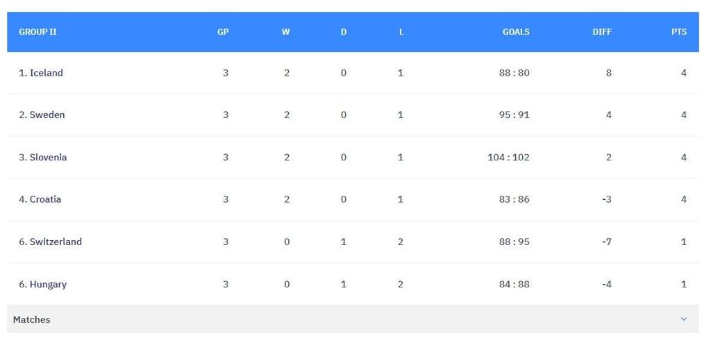 Mit der Niederlage hat die Schweiz in der Sechsergruppe der EM-Hauptrunde weiterhin nur einen Punkt auf dem Konto und damit bloss noch theoretische Chancen auf eine Halbfinal-Teilnahme, da nur die besten zwei Teams den Einzug schaffen.