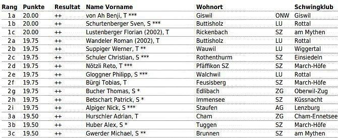 Folgende Spitzenschwinger stehen mit drei Siegen da: Nick Alpiger (NWSV), Benji von Ah (OW), Christian Schuler (SZ) und Werner Suppiger (LU).