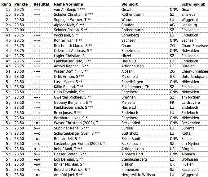 Dahinter folgen unter anderen Joel Wicki (LU), Armon Orlik (NOSV) und Erich Fankhauser (LU) mit zwei Siegen und einem Gestellten.
