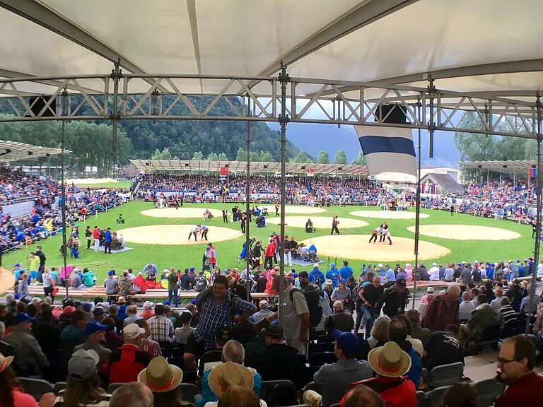 Viertens: Schwinger sind Frühaufsteher, bereits um 4 Uhr Morgens startet am Sonntag der Betrieb, die Kassen öffnen um 6 Uhr, Anschwingen ist um 7.30 Uhr. Bis dahin machen wir eine Pause und sind morgen wieder live für Sie am 113. Innerschweizer Schwing- und Älplerfest.