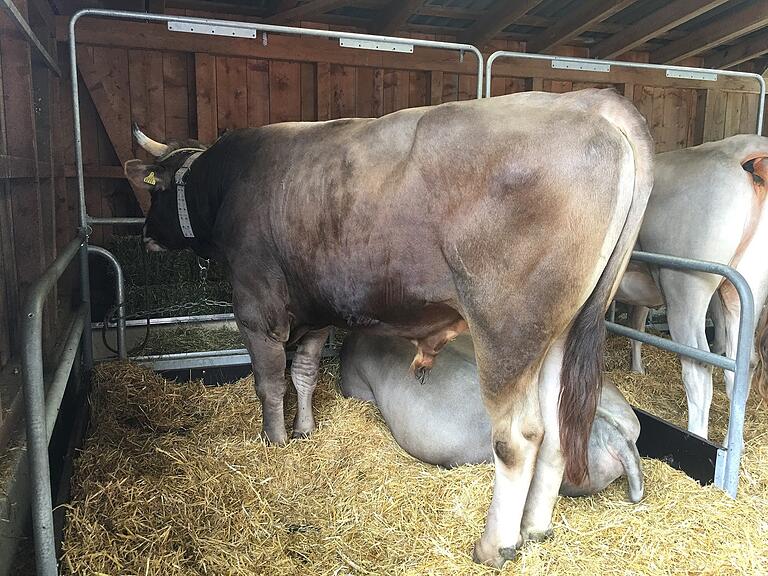 Lebendpreise 2 bis 4 sind die Rinder Gina, Evalena und Mena. Alle um die zwei Jahre alt, alle von Urner Züchtern. Auch wenn wir Siegermuni Maestro nicht von vorne zu Gesicht bekommen, ist seine Erscheinnung doch beachtlich: