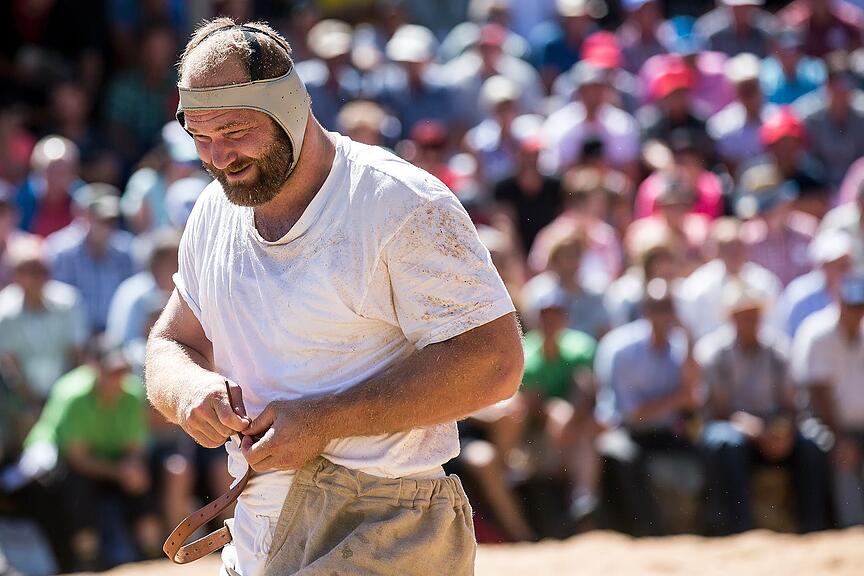 Man musste sich ja richtig Sorgen machen um Benji von Ah. Erst ein Kranz hat er in dieser Saison gewonnen. Am Urner hat er die Kranzränge verpasst, am Ob-/Nidwaldner musste er wegen Knieschmerzen (und schlechten Resultaten) aufgeben. Die Teilnahme am Eidgenössischen war in Gefahr. Und heute bodigt er zunächst Roger Erb, dann Roger Bürli und nun den Überflieger Pirmin Reichmuth. Eine eindrückliche Leistung des Giswilers.