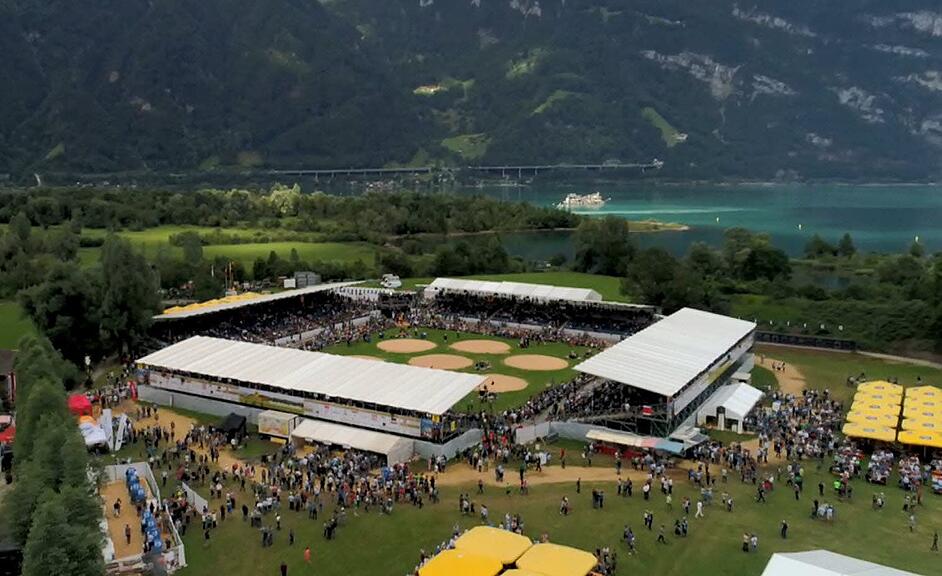 Drittens: Noch steppt der Bär nicht in und um die Urnersee-Arena, es hat verhältnismässig wenig Volk. Das Augenmerk liegt ganz klar auf dem morgigen Tag, heute ist das Schwingerdorf noch bis 22.30 Uhr geöffnet, ab 22 Uhr ist Barbetrieb in der Schwingerbar.