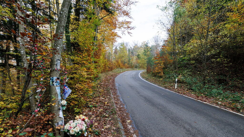 In dieser Kurve in der Schmalzgruebstrasse in Küsnacht verunglückte Muriel Furrer während der Velo-WM tödlich, fotografiert am 31. Oktober 2025. An der Unglücksstelle wurde eine Gedenkstätte errichtet.