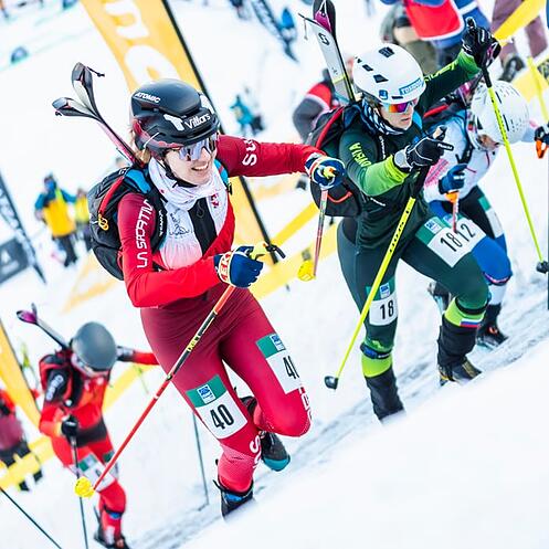 Das liegt zu einem grossen Teil am Format. Immer sechs Athletinnen beziehungsweise sechs Athleten treten im Sprint in einem K.-o.-System gegeneinander an. Zu Beginn geht es im Zickzack bergauf, ehe in einer ersten Wechselzone die Ski an den Rucksack montiert werden müssen.