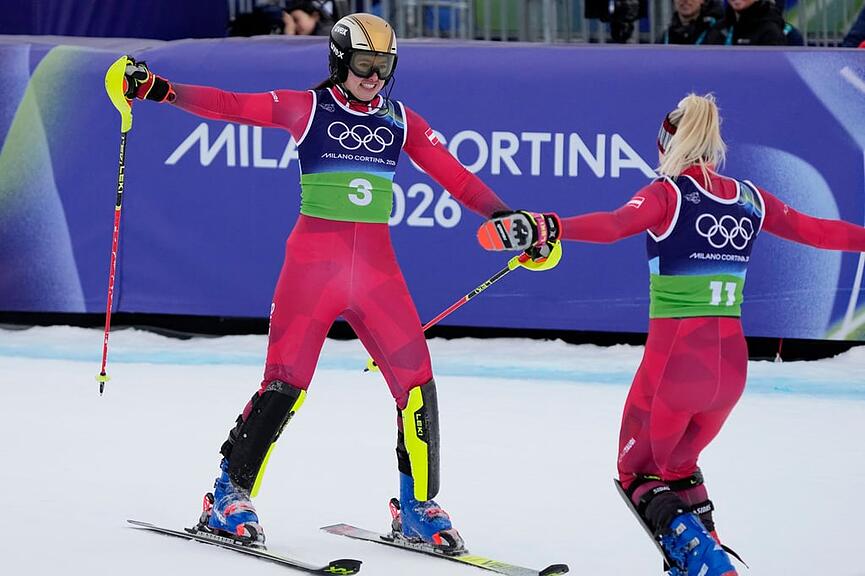Die zwei Schweizer Slalom-Cracks Wendy Holdener und Camille Rast versuchten am Nachmittag alles, fuhren voll auf Angriff. Doch letztlich war die Hypothek ihrer Team-Partnerinnen aus der Abfahrt – Jasmine Flury wie Corinne Suter hatten auf der Piste Olimpia delle Tofane je 1,5 Sekunden auf die Spitze eingebüsst – zu gross. Flury/Holdener (6.) fehlten gut sechs Zehntel zu Rang 3, Suter/Rast (9.) knapp eine Sekunde.