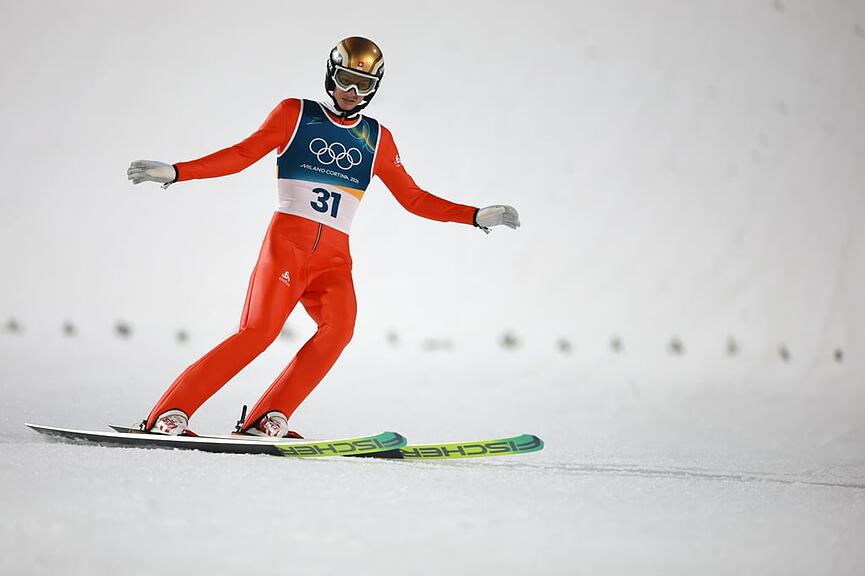 Gregor Deschwanden gewinnt von der Grossschanze keine zweite Olympia-Medaille. Beim Sieg des Slowenen Domen Prevc belegt er in Predazzo den 13 Platz.