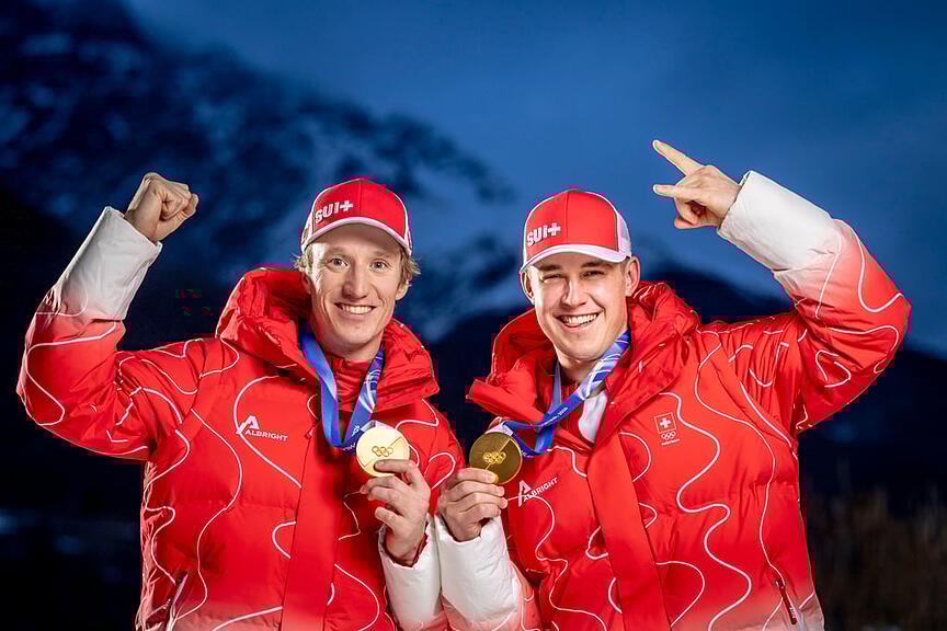 Kurz nach Mathilde Gremauds Triumph schlagen auch die Männer in der Teamkombination zu. Nach einem packenden Slalomlauf stehen gleich zwei Schweizer Teams auf dem Podest. Franjo von Allmen und Tanguy Nef sichern sich souverän die Goldmedaille. Nef zeigt eine entfesselte Fahrt, nachdem von Allmen in der Abfahrt «nur» auf Zwischenrang vier gefahren war. Von Allem ist damit Doppel-Olympiasieger. Kein Schweizer Mann hat dies vor ihm an Olympischen Winterspielen erreicht.