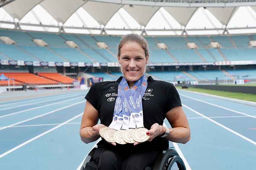 Catherine Debrunner prägte die Weltmeisterschaften in New Delhi für das Schweizer Team. Die Thurgauerin siegte über 100, 400, 800, 1500 und 5000 Meter. Mit diesen Erfolgen erhöht Debrunner ihre persönliche Bilanz auf zehn WM-Titel. Noch nie zuvor ist es ihr gelungen an einer WM über alle Distanzen Gold zu gewinnen. An den Weltmeisterschaften 2023 und den Paralympics in Paris gewann sie Silber über 100m.