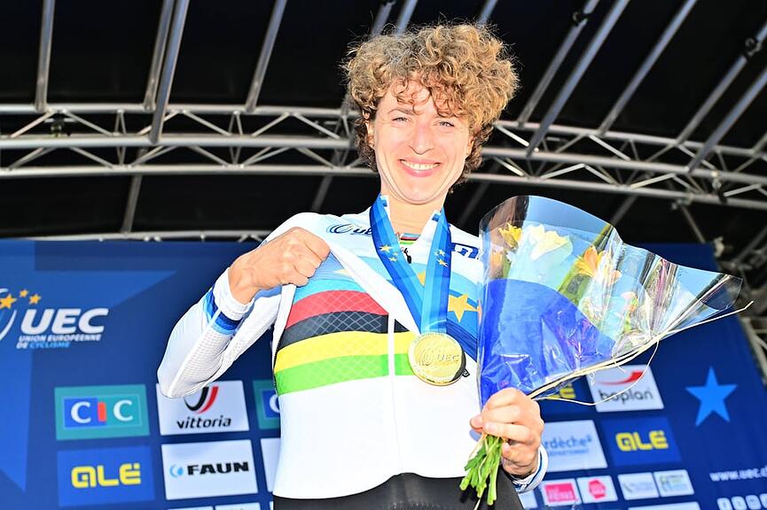 Startet Marlen Reusser zu einem Zeitfahren, kann sie sich fast nur noch selber schlagen. Vor zehn Tagen wurde sie in Ruanda Weltmeisterin, nun gewann sie im französischen Étoile-sur-Rhône in der Region Auvergne-Rhône-Alpes. Die Bernerin ist damit zum vierten Mal nach 2021 bis 2023 Europameisterin und zieht mit der Niederländerin Anna van der Breggen gleich, die zwischen 2016 und 2019 ebenfalls vier Siege gefeiert hatte.