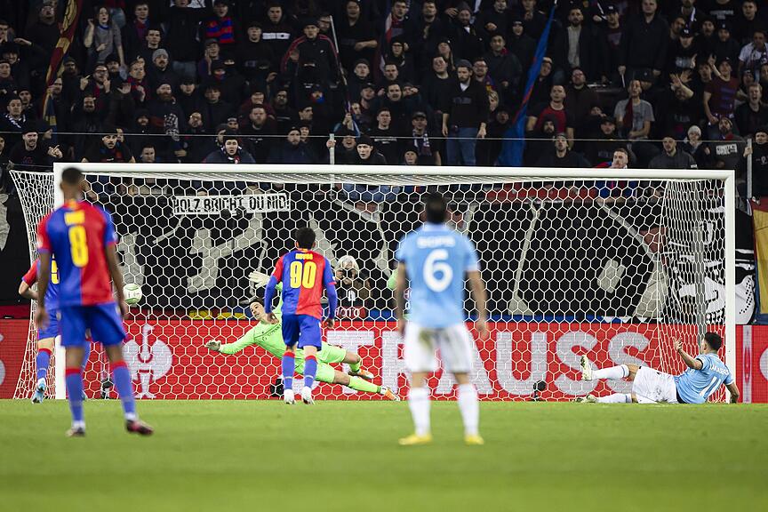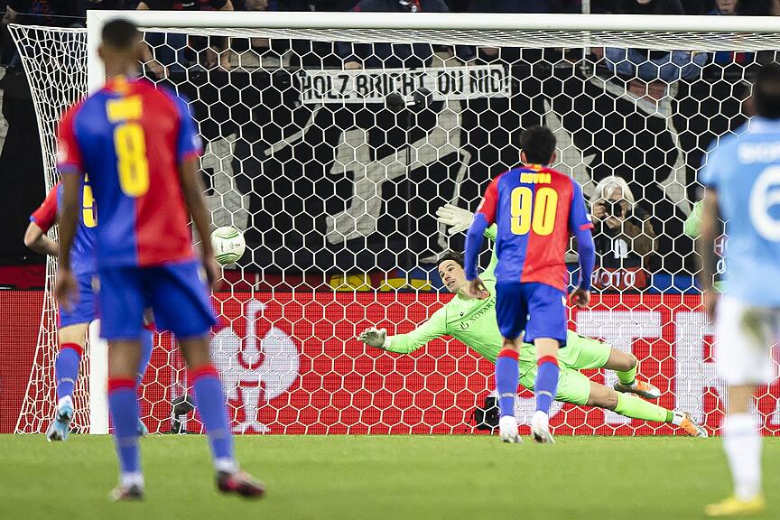 In der 26. Minute bekommt die Basler Herrlichkeit erste Risse. Schiedsrichter Antonio Mateu Lahoz entscheidet nach einem ungestümen Einsteigens des als Linksverteidiger agierenden Anton Kades auf Penalty. Anastasios Bakasetas läuft an, rutscht aus, verschiesst. Bis zur Pause kann auf beiden Seiten ein Treffer fallen: Bei den Baslern scheitert Andi Zeqiri an Gäste-Torhüter Ugurcan Cakir, auf der anderen Seite wehrt Wouter Burger in höchster Note einen Kopfball zur Ecke ab.