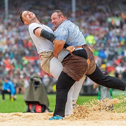 Es ist soweit: Mit Sven Schurtenberger steigt der erste Eidgenosse ins Sägemehl. Der Luzerner greift mit dem Gastschwinger Jonas Odermatt zusammen.