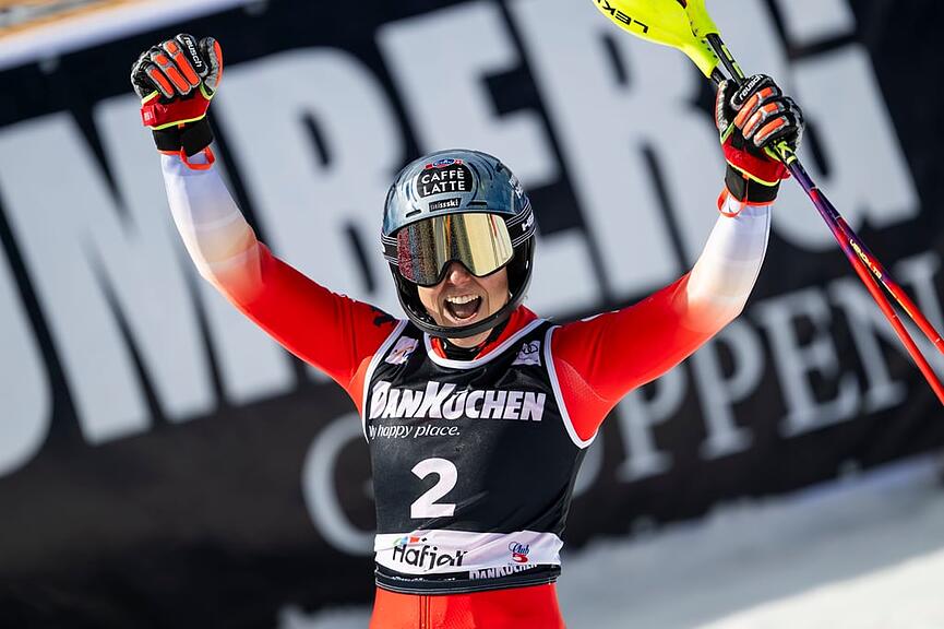 Im Kampf um die grosse Kristallkugel hat Mikaela Shiffrin ihren Vorsprung gegenüber Emma Aicher (sie wird Dritte) von zuvor 45 auf 85 Punkte ausgebaut. Damit fällt die definitive Entscheidung im letzten Rennen, dem Riesenslalom am Mittwoch. Aicher muss diesen allerdings gewinnen, während Shiffrin keine Punkte holen dürfte. Shiffrin dürfte also aller Voraussicht nach zum sechsten Mal den Gesamtweltcup gewinnen.