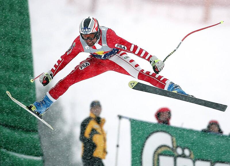 Beim ORF können sie es am 24. Januar 2004 kaum fassen: «Schau dir den Hund an. Das ist ein Irrer. Das geht um die Welt!» Grund für die Aufregung ist Kristian Ghedina. Oder besser gesagt: dessen Kabinettstückchen beim Zielsprung. Mit fast 140 km/h öffnet der Italiener im Flug beide Beine zur Grätsche und übernimmt die Führung. Am Ende reicht es zu Rang sechs.