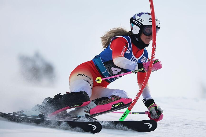 Wendy Holdener ist etwas schneller unterwegs als Camille Rast. Die 32-Jährige ist 1,92 Sekunden langsamer als Mikaela Shiffrin.