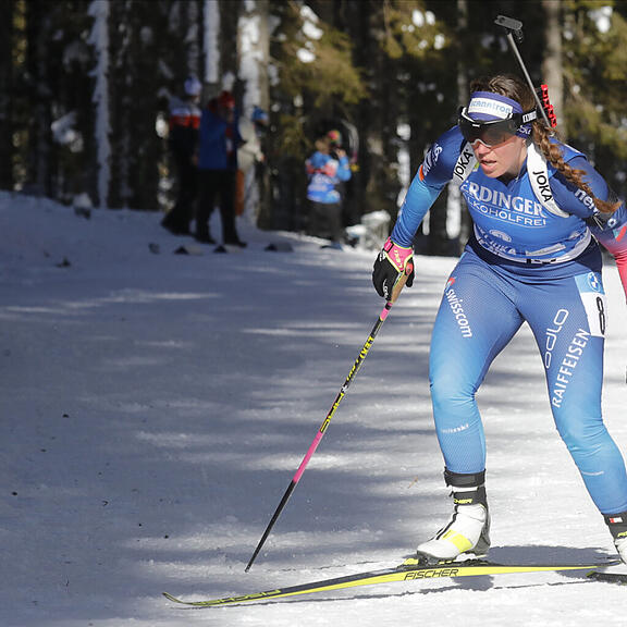Aita Gasparin musste nur einmal in die Extraschlaufe. Aber die jüngste der Gasparin-Schwestern büsst in der Loipe jeweils zu viel Zeit ein. Trotz der starken Leistung im Schiessstand blieb sie wie schon im Sprint knapp ausserhalb der Top 20. Selina Gasparin verfehlte fünf Scheiben und wurde 50.