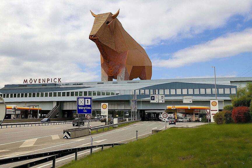 Die Autobahnraststätte ist der Treffpunkt für nervige Autoposer und andere dubiose Gestalten. Sie fällt auf mit ihrer hässlichen 70er-Jahre-Architektur – und dann dieser Kosename: Fressbalken! Guter Ruf geht anders. Da kommt Muni Max für die Autobahnraststätte Würenlos wie gerufen: Als neues Wahrzeichen 20 Meter über der Fahrbahn, geliebt und bewundert von den weit über 100’000 Menschen, die den Aargau an dieser Stelle täglich passieren.